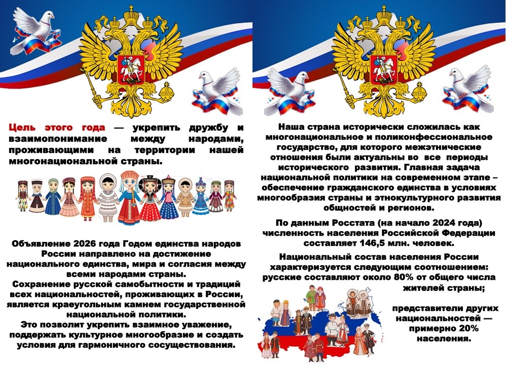 Объявление 2026 года Годом единства народов России направлено на достижение национального единства, мира и согласия между всеми народами страны.