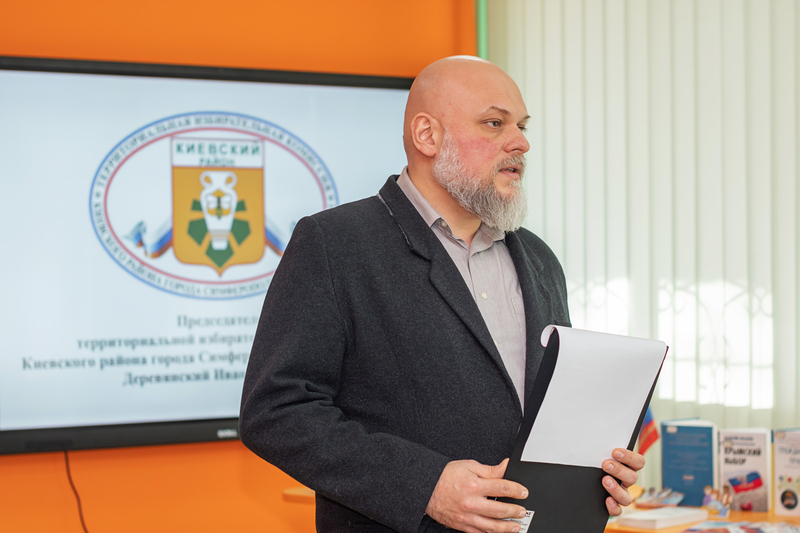 Специфику избирательного процесса подробно описал председатель ТИК Киевского района города Симферополя Республики Крым Иван Деревянский. Он доступно и интересно рассказал о тонкостях выборов, ответил на вопросы и провел четкую грань между активным и пассивным избирательным правом.