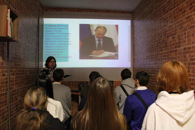 Библиотекарь рассказала читателям, что 21 апреля 2014 года Президент Российской Федерации Владимир Путин подписал указ «О мерах по реабилитации армянского, болгарского, греческого, крымско-татарского и немецкого народов и государственной поддержке их возрождения и развития». Указ снял все несправедливые обвинения с представителей депортированных народов. В том числе и с крымских татар, третьего по численности народа Крыма. Это было погружение не только в мрачные страницы истории, но и в удивительные примеры стойкости и силы духа.