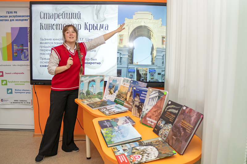 Сотрудник зала искусств ознакомила гостей с рядом крымских достопримечательностей, как несущих статус памятников регионального значения, так и просто завоевавших любовь местных жителей. Зрители впервые открыли для себя факт о том, что в Крыму ведет свою историю один из старейших театров еще со времен Российской Империи. Не остались без упоминания и знаменитые «симферопольские пчёлы» – проект по размещению миниатюрных бронзовых статуй, воплощающих в себе символ города в различных профессиональных направленностях. Одну из таких читатели смогли лично увидеть снаружи библиотеки.