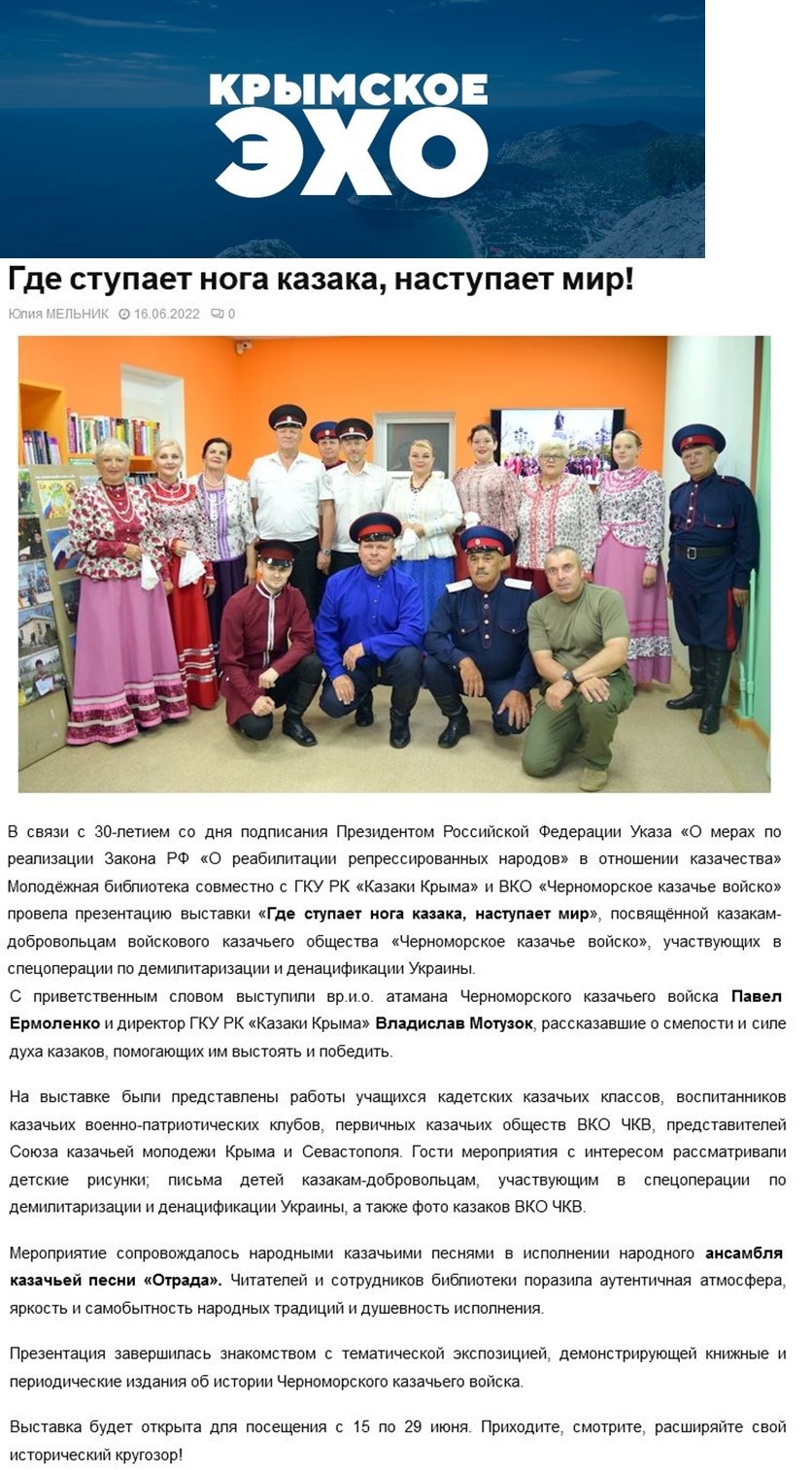 Мельник Ю. А. — Где ступает нога казака, наступает мир!