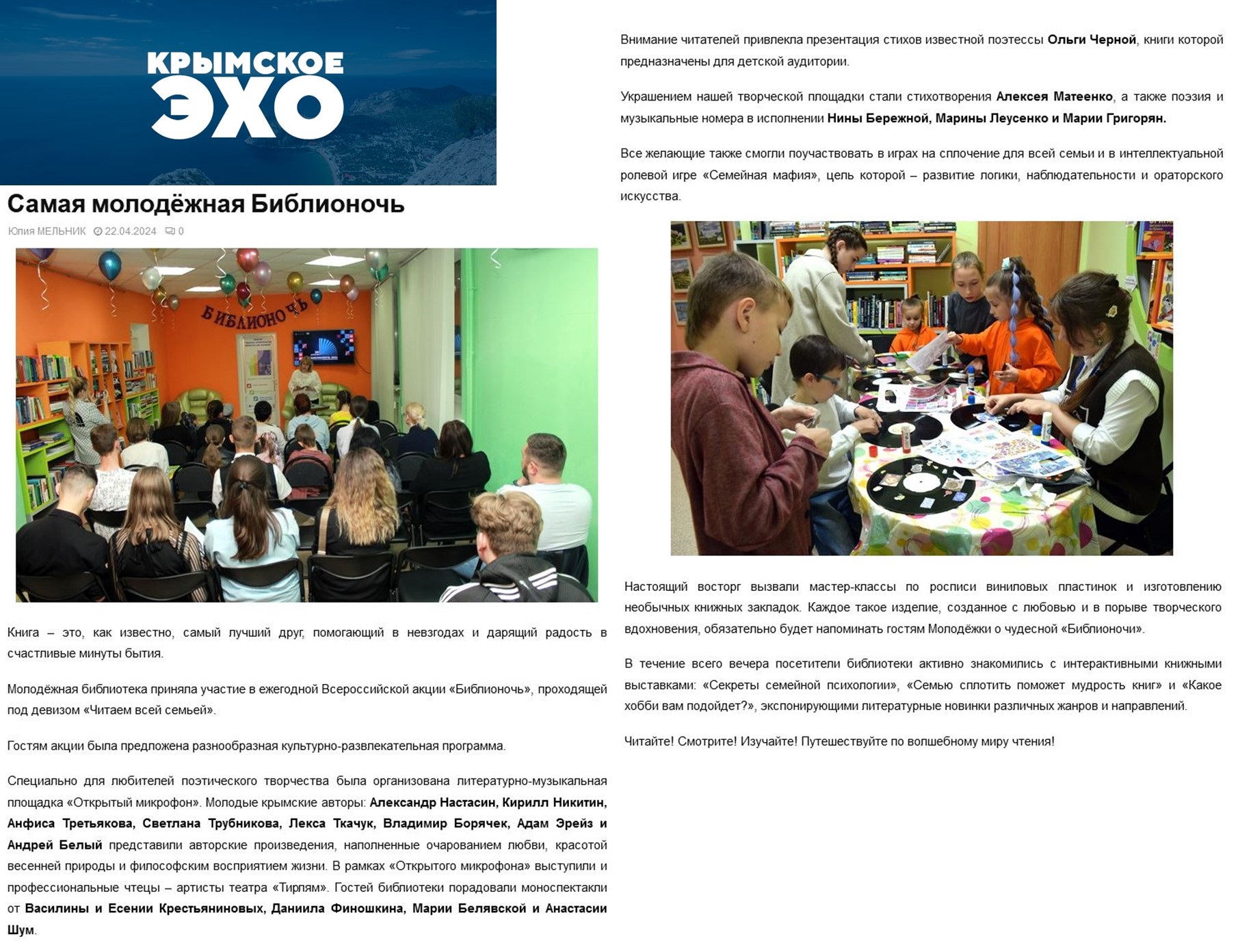 Мельник Ю. А. — Самая молодёжная Библионочь